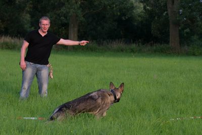 Der Hundehalter steht in der Mitte eines Kreises und bewegt den Hund mit wenigen Kommandos auf Abstand im Kreis. Longieren fördert dabei die Ausdauer, stellt aufgrund des Abstandes eine sehr gute Bindungsarbeit dar und fördert Konzentration und Auslastung ihres Vierbeiners.