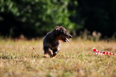 Der Hundehalter steht in der Mitte eines Kreises und bewegt den Hund mit wenigen Kommandos auf Abstand im Kreis. Longieren fördert dabei die Ausdauer, stellt aufgrund des Abstandes eine sehr gute Bindungsarbeit dar und fördert Konzentration und Auslastung ihres Vierbeiners.